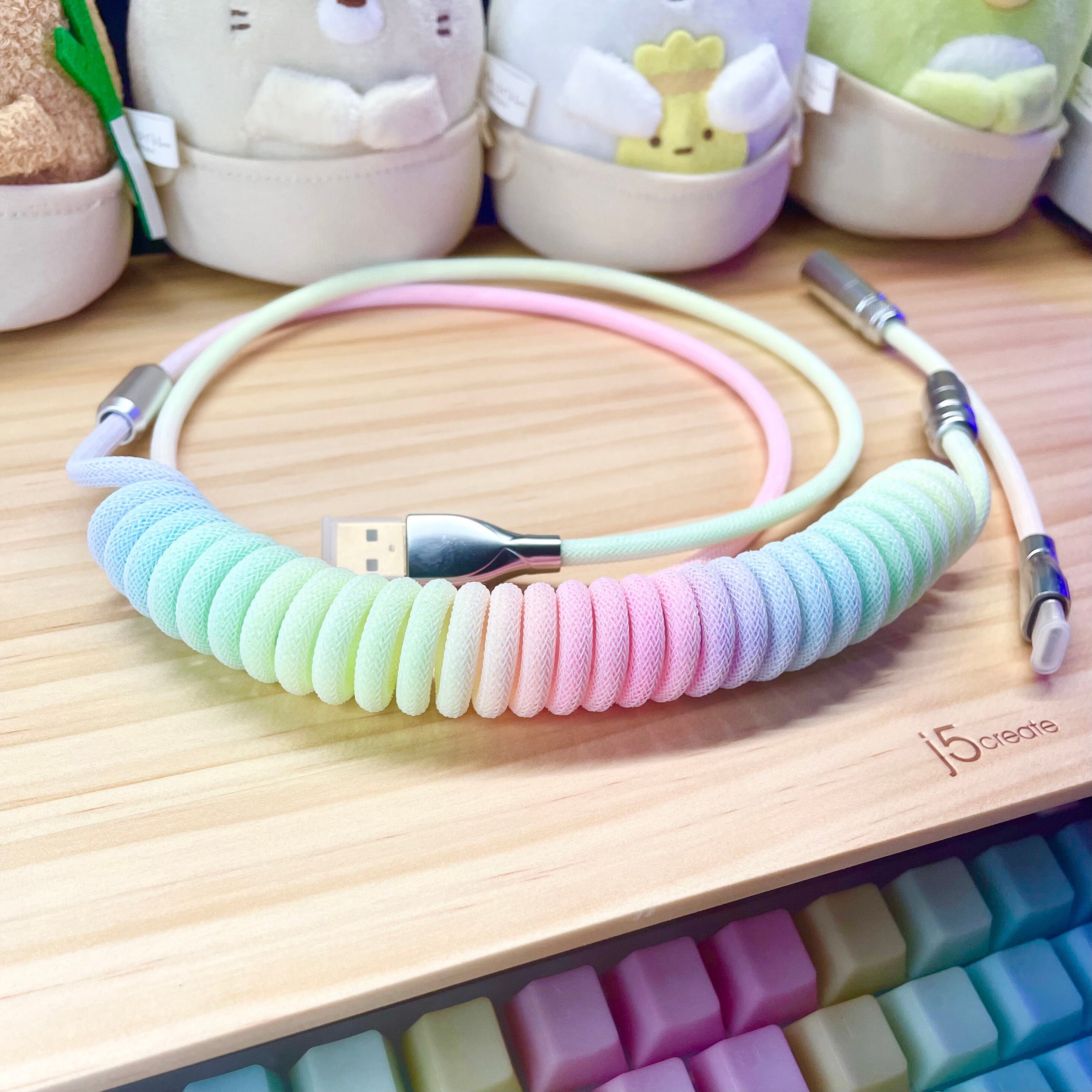 Cute Rainbow Pastel Coiled Cable For Keyboard Coiled Cable Etsy Canada